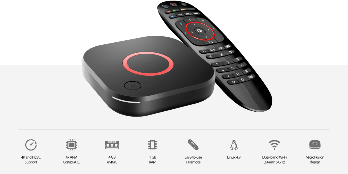 Middleware supported | Pre-integrated Ministra TV platform. Image enhancement with operator’s applications, customization, or full replacement available |